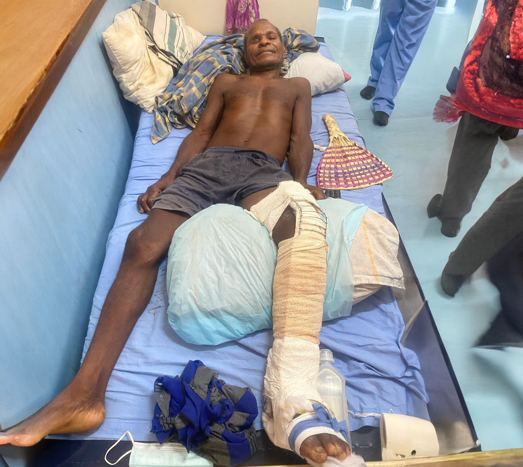 Sadly crocodile attacks are a growing concern in our district/province. As a result, people are afraid to go into the river – the only means of transportation and a large food source. Unfortunately, often women and children get targeted. We will keep treating patients like Mr Ishmael Kaipu and we thank God for saving his life. Please pray with us as we find a long-lasting solution to this problem, and be careful out there.