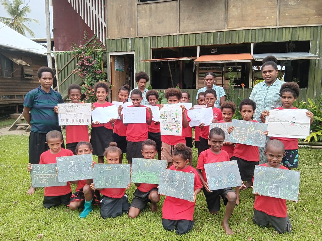 Most of the children come from the two villages on either side of Kapuna. They spent their first weeks learning Uniskript, a program that uses phonetic symbols and is taught in their local language. About ten years ago, some of our teachers and linguists, Robbie and Debbie Petterson, went to Hawaii to learn Uniskript and develop the symbols for the local languages. The children love Uniskript because it is so much fun and easy to understand, being in their own language. Then we bridge to English, where each week they learn a new letter, number, and nursery rhyme. We have decided that slow, steady, and fun is the way forward, and if the children grasp these foundational teachings, they will have a strong educational future. It is now just over halfway through the year, and these children are transformed beings.