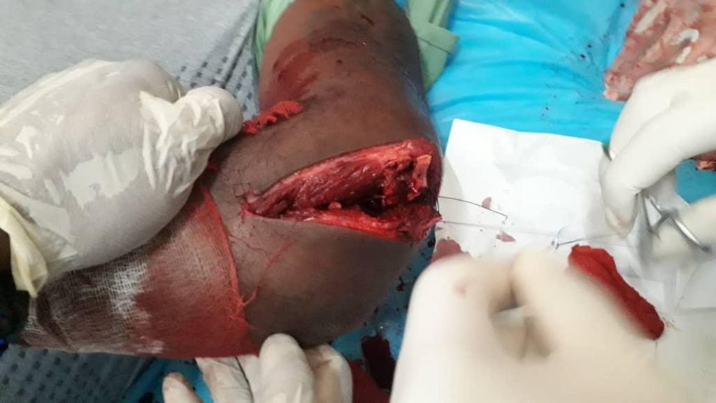 🦴 Index suffered a fractured humerus and severe cuts. The team sutured his wounds and reduced the fracture with help from physiotherapist Mr Kamia Keldi.